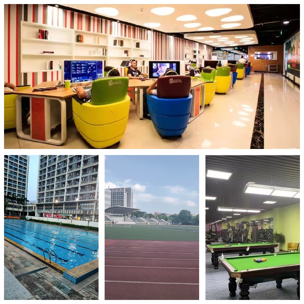 富士康員工娛樂:廠區內游泳池、健身房、網吧、圖書館、籃球場、足球場、桌球室都免費使用
