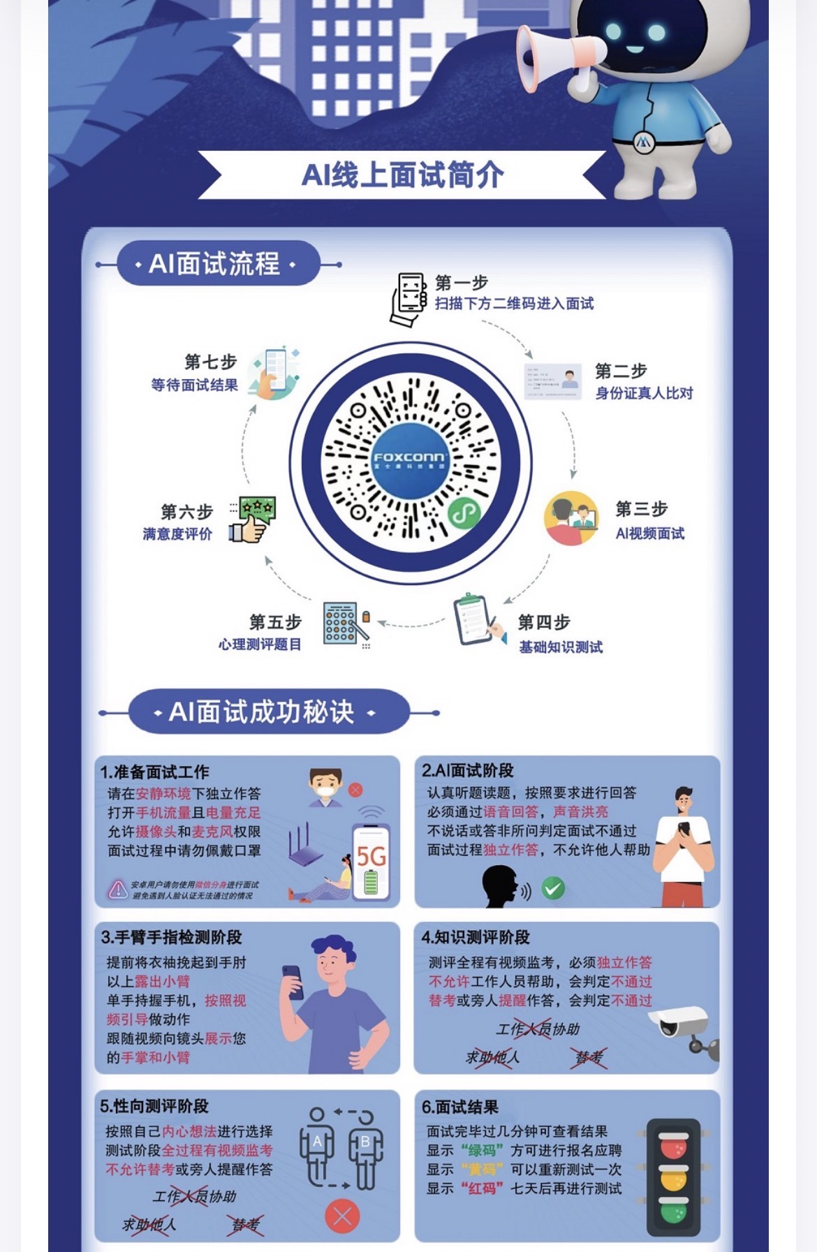 富士康作為大型制造企業,AI面試能高效處理大量求職者,滿足招聘需求。