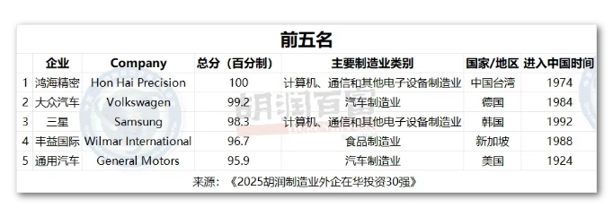 《2025胡潤制造業外企在華投資30強》是胡潤研究院首次聚焦制造業外資企業的權威評選。