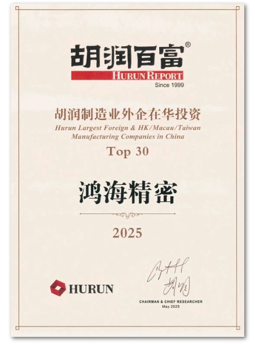 此次榮膺《2025胡潤制造業外企在華投資30強》榜首,是對集團長期扎根大陸、引領科技制造的高度認可。